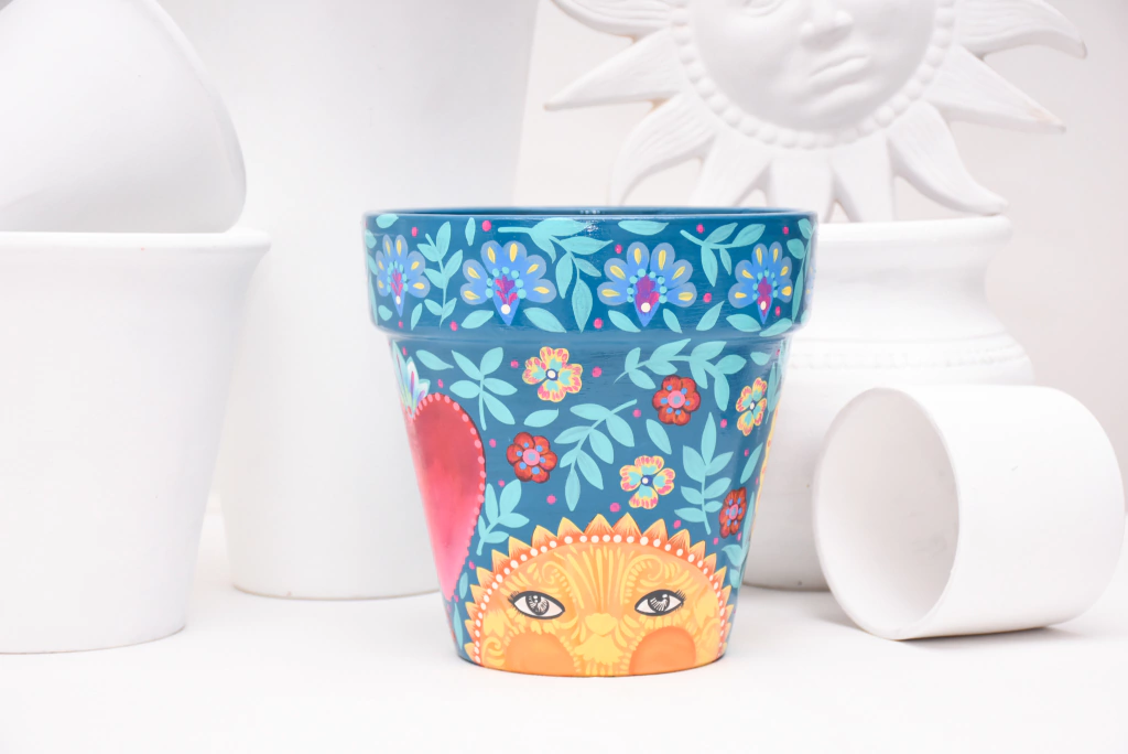 ❃ Las macetas son de barro y tienen un proceso de impermeabilización previo al pintado de las bases y diseños y una terminación final con barniz apto exterior.