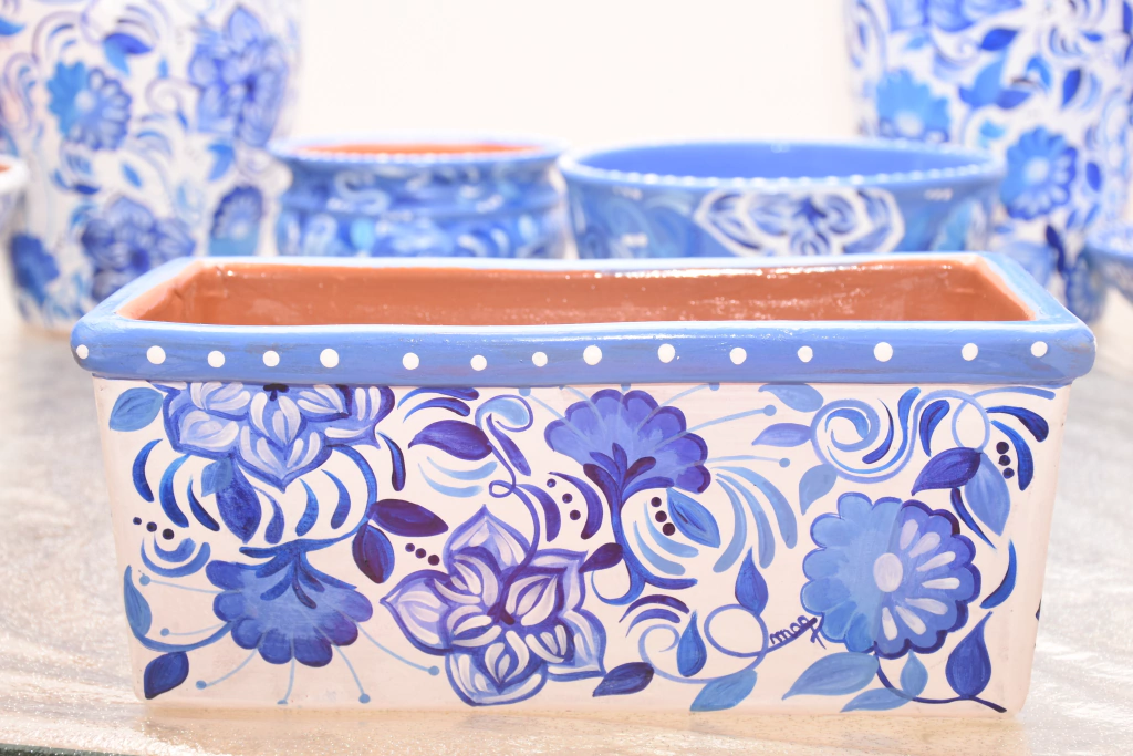 ❃ Las macetas son de barro y tienen un proceso de impermeabilización previo al pintado de las bases y diseños y una terminación final con barniz apto exterior.