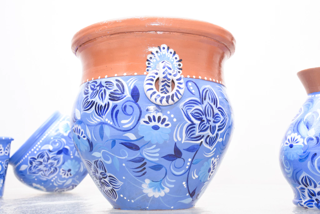 ❃ Las macetas son de barro y tienen un proceso de impermeabilización previo al pintado de las bases y diseños y una terminación final con barniz apto exterior.